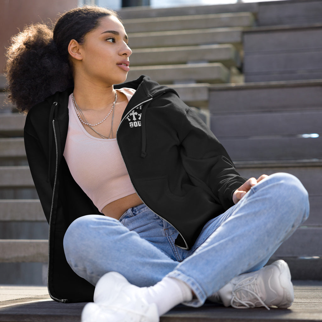 With its soft, premium quality fleece fabric and jersey-lined hood, this unisex zip-up hoodie will be a cozy addition to your outfit. Pair it with jeans, shorts, a skirt, or a dress to stay warm in style.